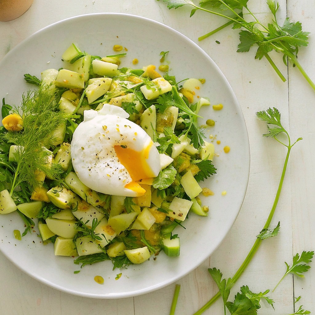 Салат "Зелёный Ураган" с крапивой и яйцом-пашот