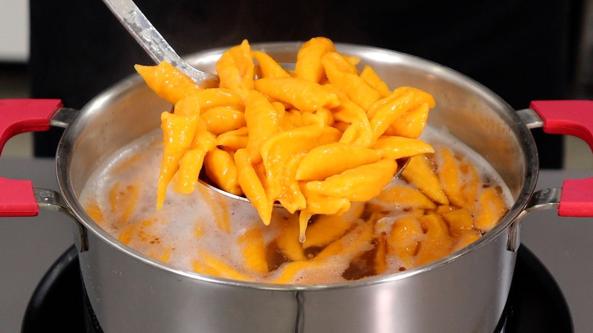 Эти клёцки получают в результате яркий оранжевый оттенок и обладают ненавязчивым ароматом. Пробуйте и делитесь вашими впечатлениями!