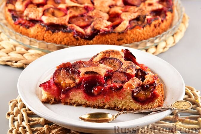 Для сладкоежек подойдёт песочный пирог со сливами и корицей, который готовится очень быстро и не требует никаких сложных манипуляций.