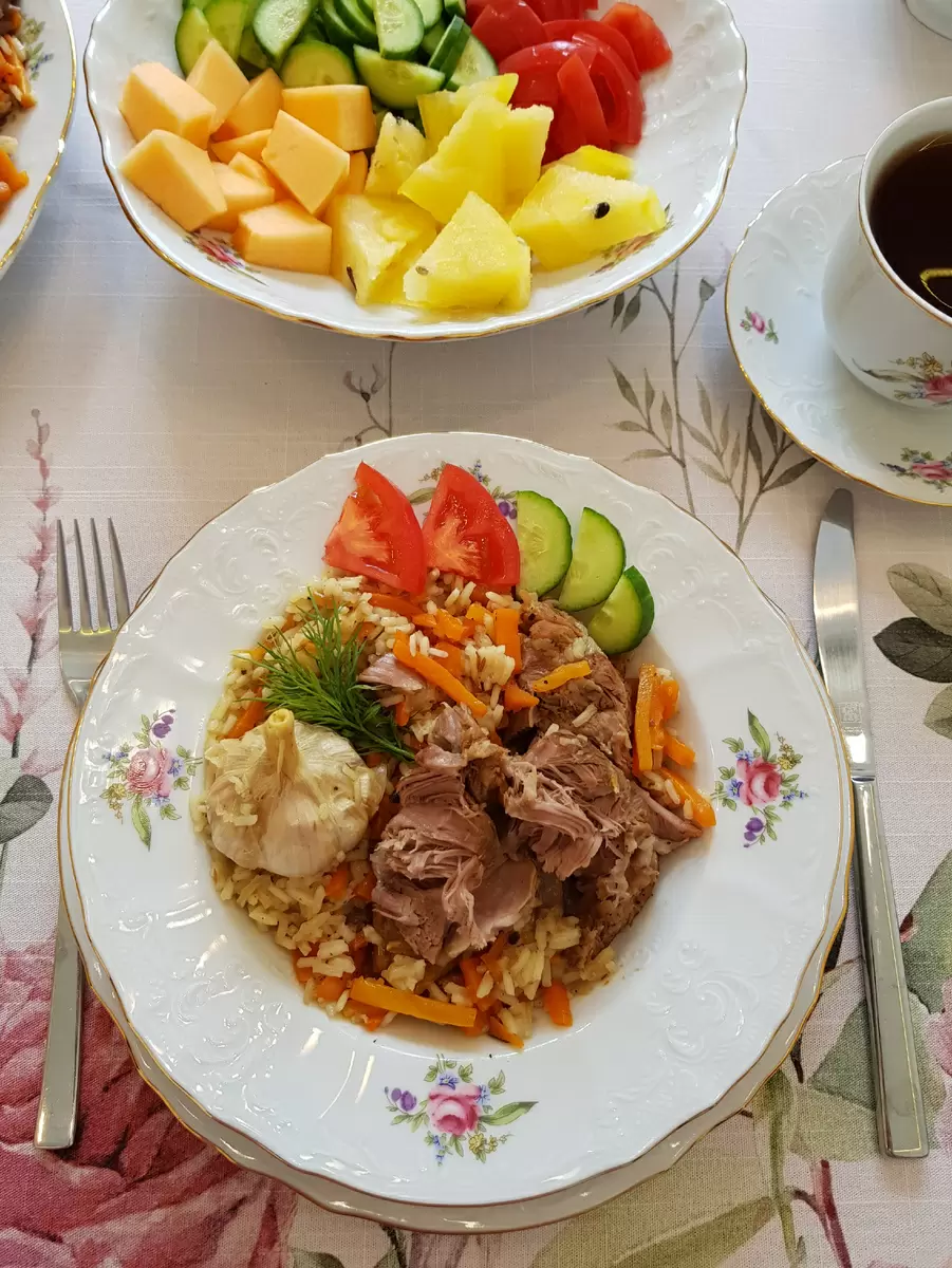 Блюдо готово к подаче! Плов можно дополнить свежими овощами, и он станет настоящим гастрономическим праздником. Приятного аппетита!