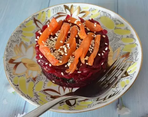 Салат из варёной свёклы с сухофруктами – это идеальное сочетание витаминов и ярких вкусов, которое можно приготовить всего за 15 минут. Этот лёгкий и питательный салат отлично дополнит любой праздничный или повседневный стол, а отсутствие майонеза делает его ещё более лёгким и здоровым.