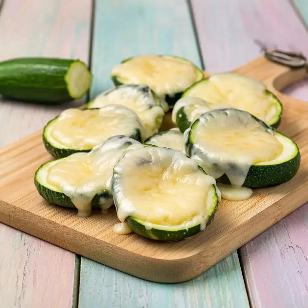 Приготовление: Нарежьте кабачки кружочками толщиной 1 см, выложите их на противень. Смажьте оливковым маслом, посолите и поперчите, затем посыпьте натертым сыром. Запекайте в предварительно разогретой до 180°C духовке около 15 минут.