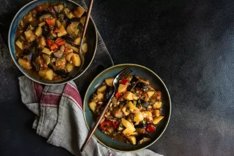 Вегетарианское овощное рагу с баклажанами и картошкой