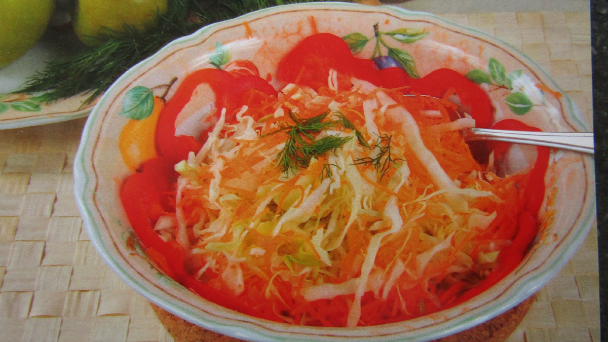 - 500 г белокочанной капусты — основа блюда, который придаст свежесть.