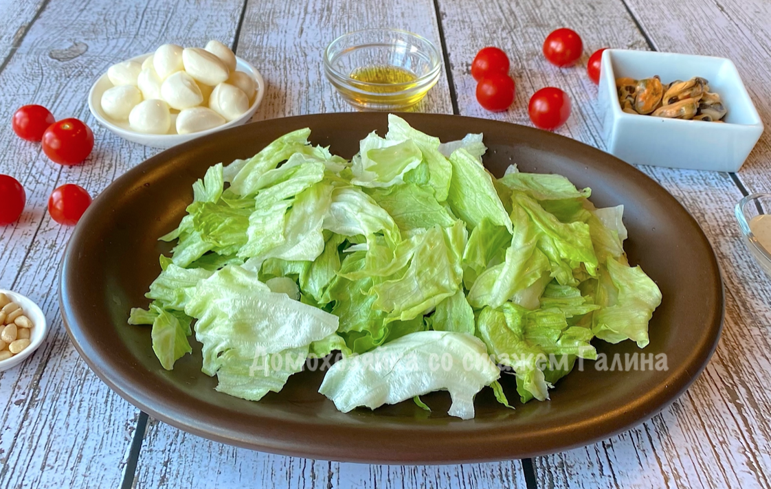 Вдохновение для этого рецепта пришло после визита на рынок, где были куплены свежие листья салата айсберг и яркие помидоры черри. Такой салат — отличная находка для праздников, благодаря своему яркому внешнему виду и насыщенному аромату. В случае, если мидии вам не по вкусу, можно легко заменить их на креветки, красную рыбу или обжаренные кусочки курицы.