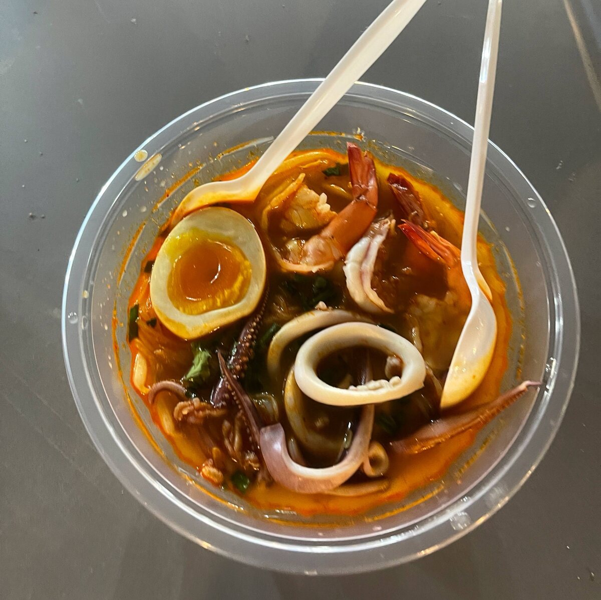 В поисках настоящего том яма в Таиланде, кажется, не удается найти то, что обещают местные кулинары. В ходе очередного визита к этому знакомому супу, ожидания снова не оправдались. Вместо яркого вкуса пряного том яма был предложен лишь слегка острый рамен с морепродуктами и яйцом, который совсем не соответствовал ожиданиям.