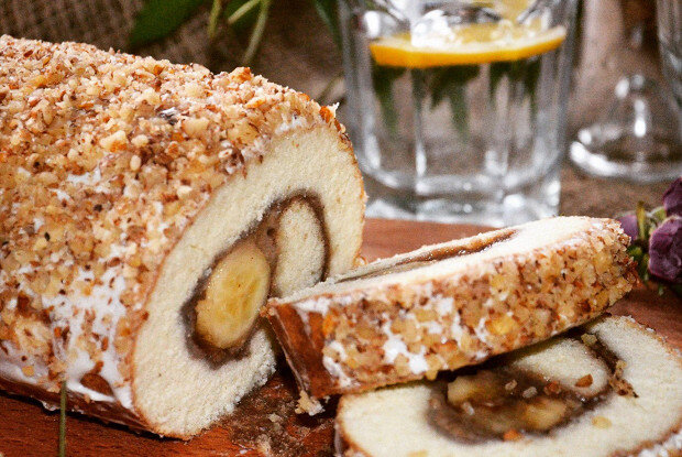 Этот рулет с нежной банановой начинкой обязательно станет звездой вашего стола. Идеален как для семейного чаепития, так и для праздничного угощения.