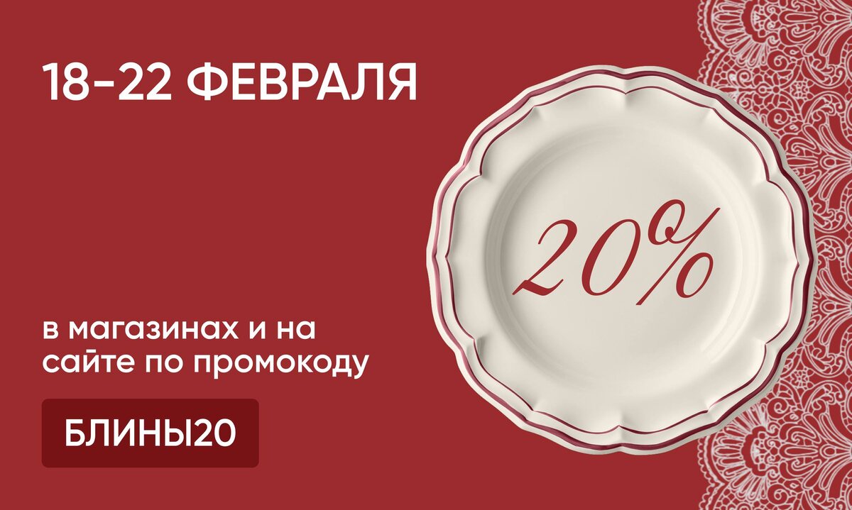 - При оформлении заказа используйте промокод БЛИНЫ20 на сайте или назовите его на кассе в магазинах.