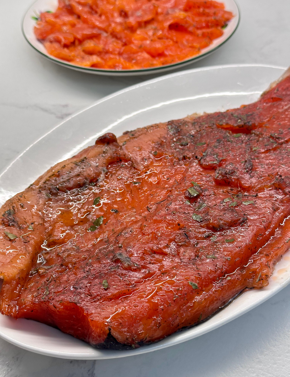 Сыровяленная форель готова к подаче, служит отличным дополнением к вашим любимым блюдам. Если вы хотите, рыбу можно порезать и заморозить для последующего использования.