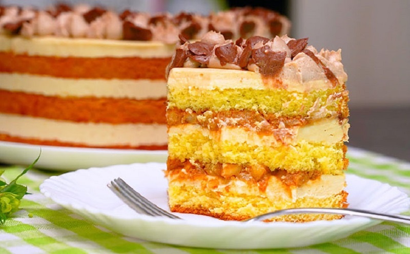 Пока крем остывает, очистите яблоки и нарежьте кубиками. Обжарьте их на сливочном масле до золотистого цвета и добавьте варёную сгущёнку. Когда начинка остынет, взбейте оставшееся сливочное масло и постепенно введите остывшую яблочную массу, создавая нежный крем.