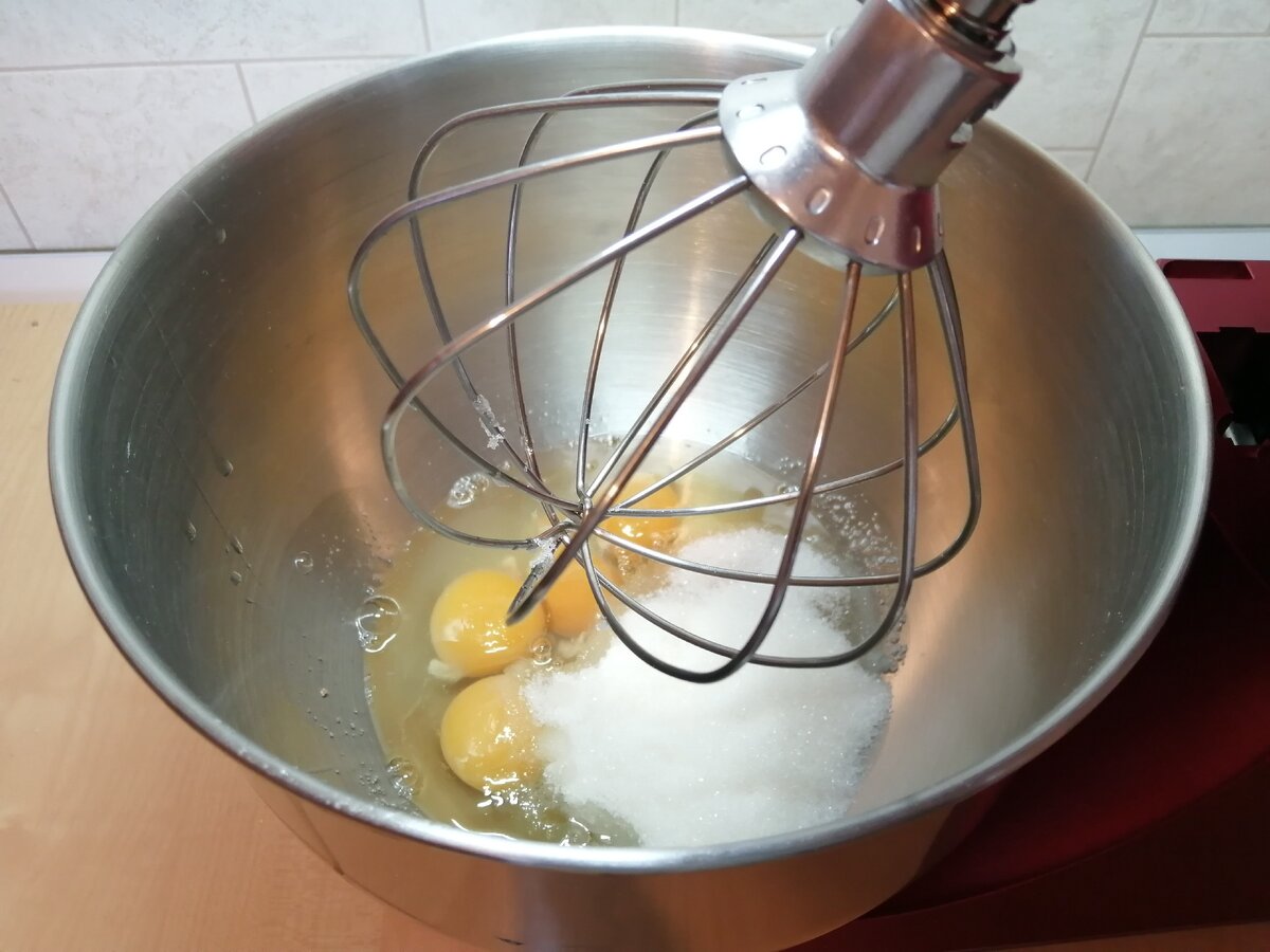 Первый шаг – взбить яйца до воздушной массы. Для этого потребуется около 10 минут интенсивного взбивания. После этого аккуратно ввести муку и какао, перемешивая снизу вверх с помощью силиконовой или деревянной лопатки.