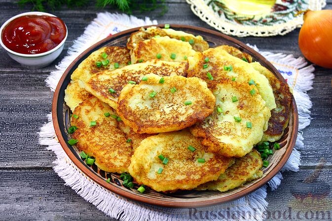 Сегодня в меню: картофельные драники без яиц и муки, салат с крабовыми палочками и кальмарами, суп с фрикадельками и лапшой, а также десерт — банановый пирог и творожное печенье с сухофруктами. Эти блюда не только аппетитные, но и готовятся быстро, что особенно порадует занятых хозяек.