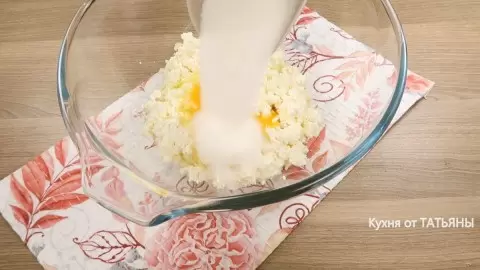 Для начала все ингредиенты должны быть комнатной температуры, поэтому их стоит заранее достать из холодильника. В глубокой миске смешивают творог с яйцом, добавляют сахар, растопленное сливочное масло, ванильный сахар и щепотку соли. Перемешивание массы можно начать вилкой, а затем использовать блендер для достижения однородной консистенции. Это поможет избавиться от комочков творога и сделает тесто более нежным.