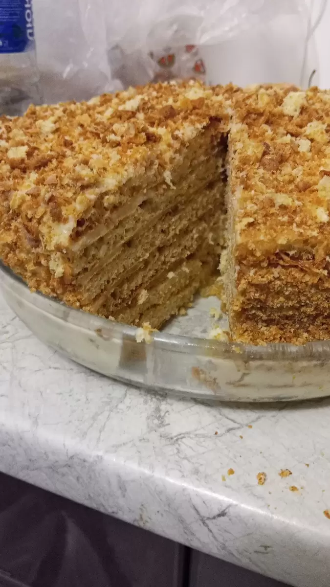 Торт следует обсыпать крошкой из коржей и оставить в прохладном месте как минимум на 4 часа, желательно на ночь. На следующий день он обретает поистине уникальный вкус и многослойную текстуру, а вся семья будет ждать его с нетерпением.