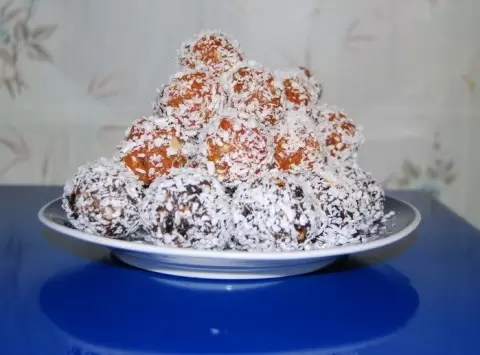 Кроме того, понадобятся 2 столовые ложки ликера или коньяка и 20-30 г кокосовой стружки или белого кунжута для обсыпки.