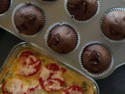 Быстрые и аппетитные блюда — это идеальный старт для любого утра. Сегодня утром было потрачено всего 15 минут на приготовление теста для маффинов и начинки для куриного пирога.